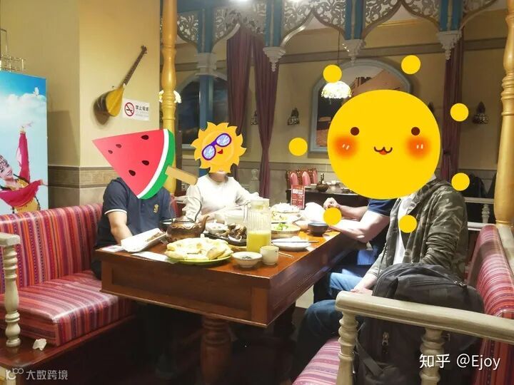 之后带他们去穆斯林餐厅吃饭,他们说要到日落才能开始进食,查看手机当天日落是6:40, 我们到餐厅点好菜,菜都上来后还没有到时间,所以就等着,他们说我们可以先吃,我们就先吃了羊肉串垫垫,终于到了6:40,他们做完例行祷告后喝口水,可以开吃了,吃饭期间照例聊聊各地见闻,风俗习惯,有趣的事。这客户很实在,说这餐饭他请,我们说在我们的地盘,当然是我们请你们吃,等到了你们国家你再请我们吃饭。这样客户说了两三遍,最后肯定是我们付钱的,虽然客户可能真有诚意付钱,但是咱也不能让人家付啊。