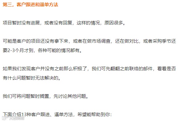 除了以上10点,我们还可以采用以下3点方法来跟进、逼单: