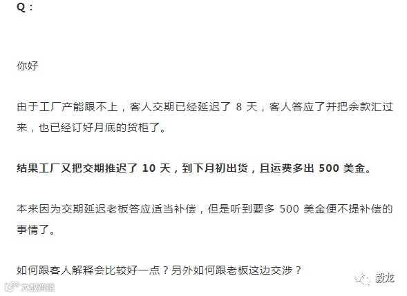 如果工厂自身对延期交货的危害没有足够的认识,你再怎么沟通也是白搭。