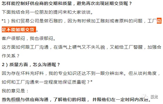 所以首先要让工厂提高认识,怎么提高呢?以及怎么尽量避免再次出现交货延迟呢?