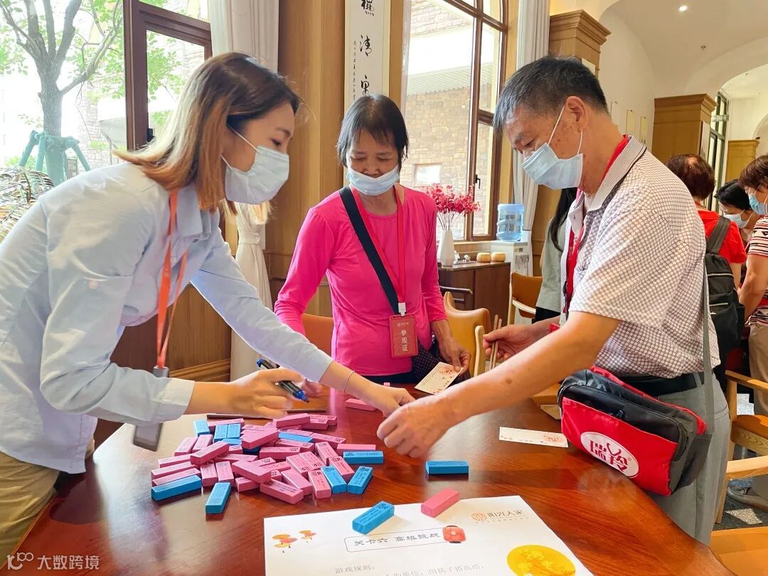 而在阳光人家的体验中心,上演了一场场精彩绝伦,趣味横生的游园活动,趣味保龄、鱼跃龙门、彩球投掷、锦上添花、高塔挑战等多个有趣的游戏关卡,引起了阳光爸妈们浓厚的兴趣,现场一片喜庆热闹景象。阳光爸妈们或三五成群一起商量,或聚精会神冥思苦想,满是欢声笑语,共同体验互动游戏带来的乐趣。