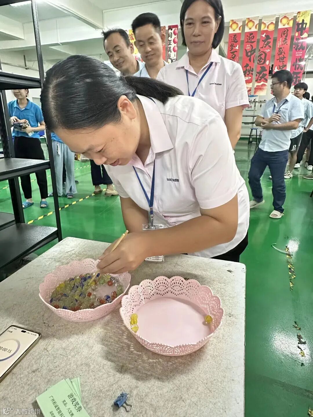 筷乐大作战:筷子夹零食的“战场”上,有人稳准“秒夹”,有人笑着“手抖”,身边同事的加油声比奖品更暖,“筷”乐里藏着柏诚人的默契。