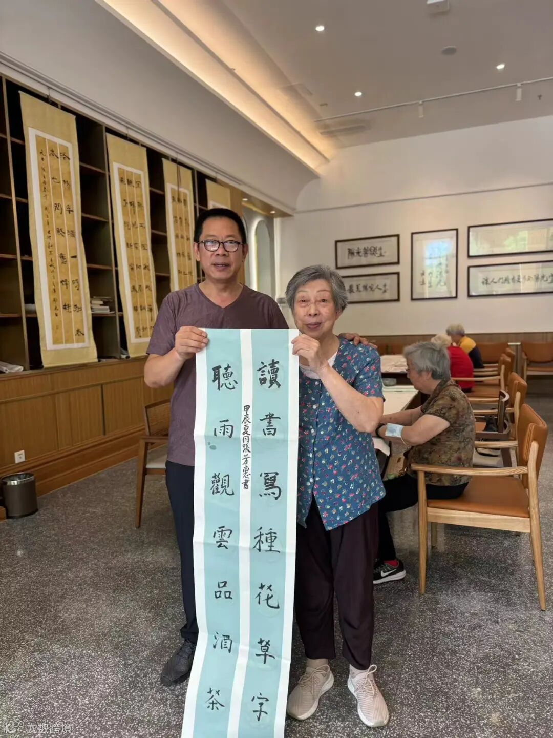 照片拍完后,长者看着照片