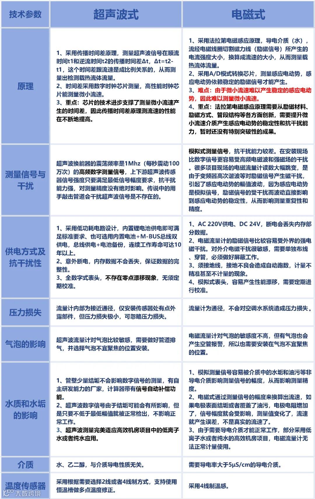 通过对比,要选满足低流速条件下,能正常运行并保证计量精度的就采用超声波流量传感器。
