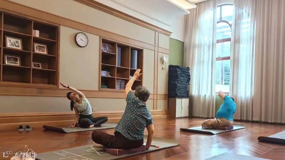 管家会带长者一起做瑜伽~运动不宜大汗淋漓,应适度并宜柔缓的运动避免剧烈运动。