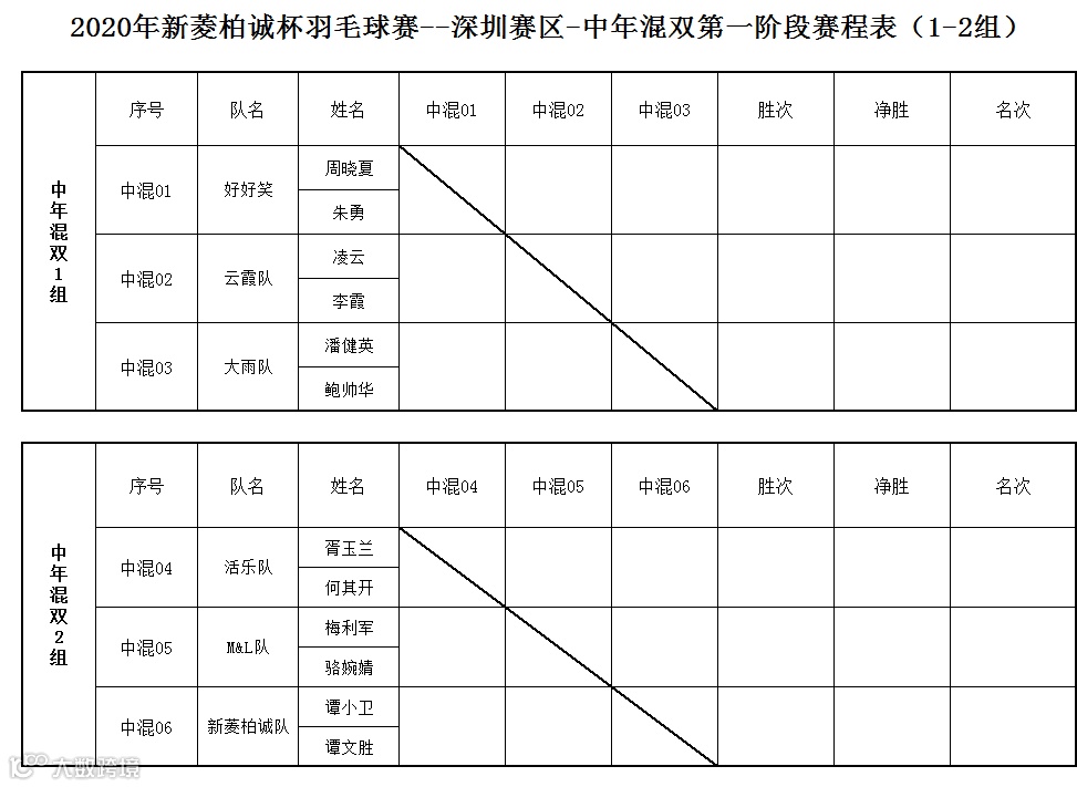 中年混双组初赛