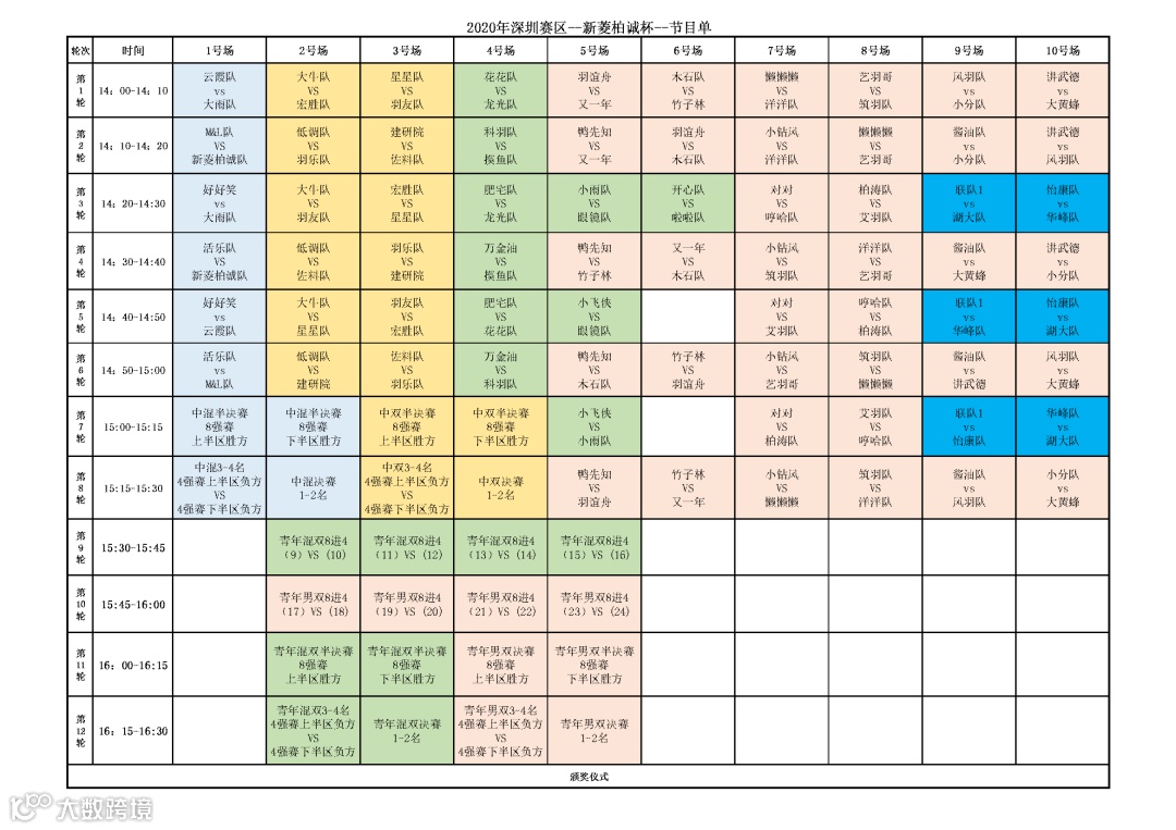 赛程节目单(深圳赛)
