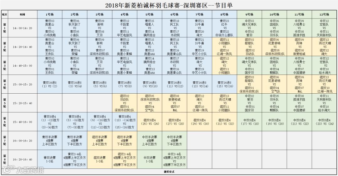 5、参赛者必须按照已编定的比赛时间和场序,到指定的场地参加比赛,除第一场按编定的时间外,之后的比赛将按上一场比赛结束后时间算起,迟到10分钟则视为弃权。