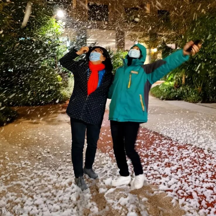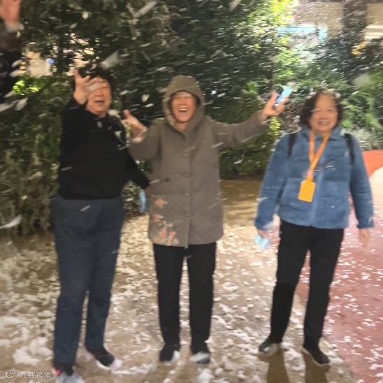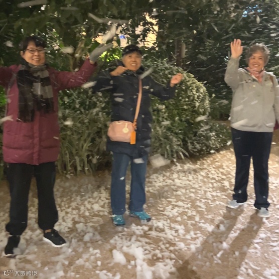 从18号就“安排下雪”啦~可以带着老友打卡雪花飘舞~祝老人圣诞节快乐,这片雪花惹得每个老人都笑的合不拢嘴。