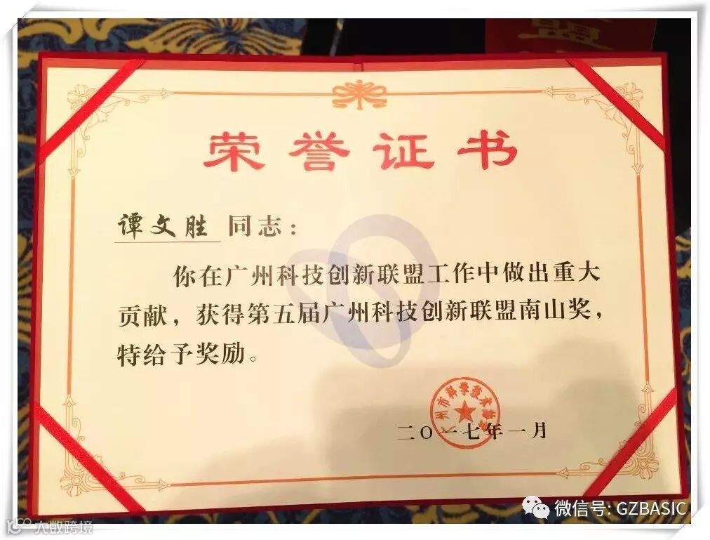 在年会上,表彰了在自主创新和科研领域做出突出贡献,促进科学技术成果的转化的科技工作者,广州柏诚智能科技有限公司谭文胜总经理,荣获第五届广州市科技创新联盟南山奖。
