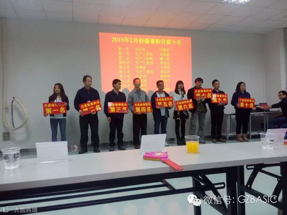 制造部总监万志刚总监上台致辞:积分制管理已经推行了5个月,同事们经历从最初的懵懂,然后培训学习,讨论研究,改进认同的一个过程,参与度也不断的提高,取得了令人满意的成绩,相信在不久以后,会有更多的积分被挖掘出来……总结结束后,由主持人公布了1月份和2月份做事积分排名与表彰,邀请积分前10名的同事上台领奖并发表个人获奖感言。