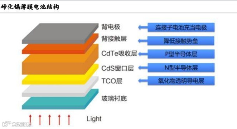 薄膜太阳能电池最常用的材料包括铜铟镓硒(CIGS)、硫化铜铟镉(CIS)、有机聚合物等。作为太阳辐射的吸收层位于薄膜太阳能电池的最上层,以下是电池层、底电极(包括钢、铝、镀层等)、背电极(包括不导电和导电胶粘剂等)的排列顺序。在实际生产过程中,会根据实际需要进行一定的调整,如使用透明导电电极、太阳能电池阵列等。