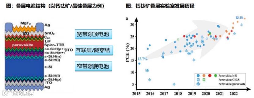 凭借超高的光电转换效率,未来钙钛矿与晶硅叠层的电池技术有望成为光伏领域的终极技术形态。