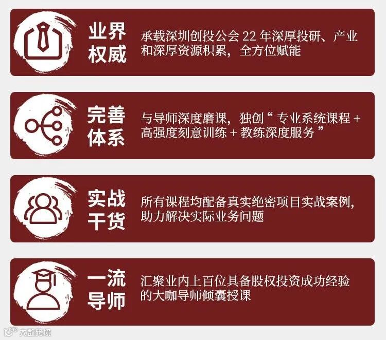 授课导师均为超级投资大咖、一线投资机构创始合伙人、主管合伙人or超一线资深投资总监级以上,