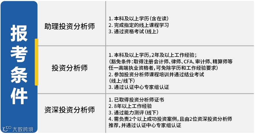 申请人须践行风投创投行业职业操守并具有相关专业能力及知识体系,通过统一培训、考试、推荐及相关资格审核后取得相应等级的投资分析师认证资格。