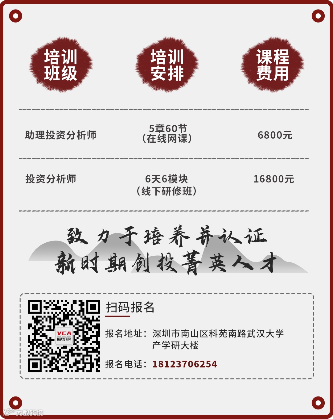 现在,我们正式将投资分析师VCA证书实战培训班带给大家(以下简称:VCA证书班)!