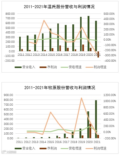 温氏股份、牧原股份近十年数据对比
