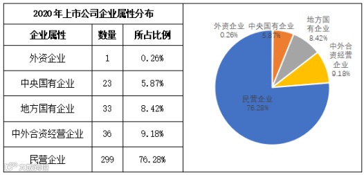 2020年,公告股权激励的A股上市公司中,民营企业299家,占总数的76.28%;国有企业为56家,占总数的14.29%;外资企业(含中外合资经营企业)为37家,占总数的9.44%。