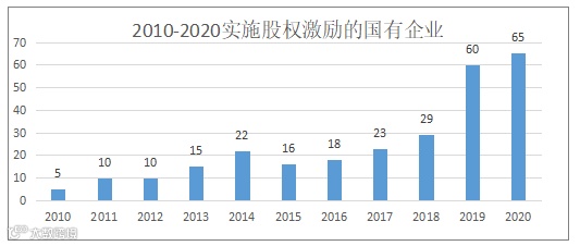 虽然国有企业股权激励实施数量严重滞后,但在国企改革不断深化的大背景下,国有控股上市公司股权激励数量也呈现了稳定增长。自2010年至2020年,国有上市公司股权激励公告数量从5个增长至65个。2020年之所以众多国有上市公司愿意实施股权激励,华扬资本分析主要原因如下: