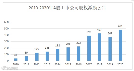 2020年A股上市公司中共有392家企业发布了481份股权激励方案,同比增长31%,创历史新高!从企业属性来看,民营企业仍是主力军,但国有上市公司实施股权激励/员工持股的信心加强,2020年A股市场共有56家国有控股上市公司发布了股权激励计划。