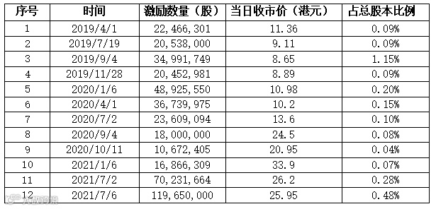 据笔者统计,小米自2018年上市以来,共实施12次股权激励,如下: