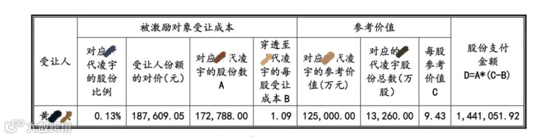 2019年5月,黄X受让欧X持有的X宇之光1.27%的股权,对应时代凌宇股权占比为0.13%,以上述参考价格模拟测算X宇之光2019年股权转让如确认股份支付,影响2019年度的金额为144.11万元,占当年利润总额的比例为1.89%,对2019年经营业绩的影响较小。”