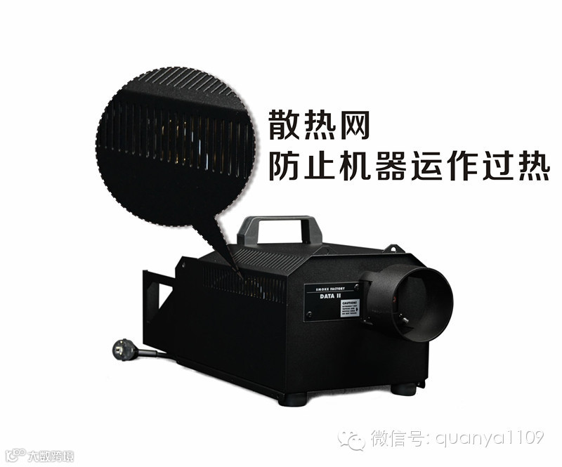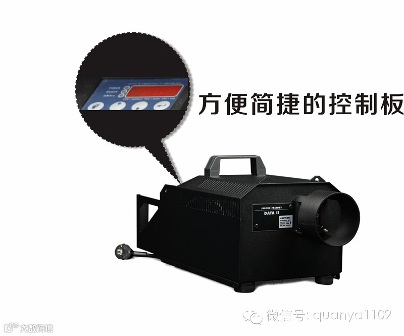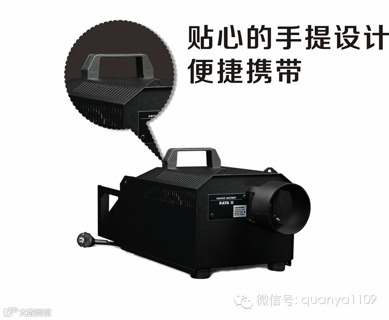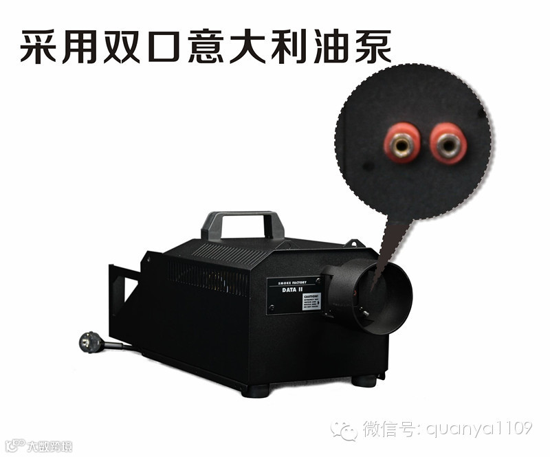 最新一代的经典动力喷雾机,有2个强力的进口泵,可交换工作或者同时工作,不但起到节能作用,且令烟雾粒子输出庞大而具有气势,50%以下输出可不间断出烟,可连接Factory Fan 风扇使用。