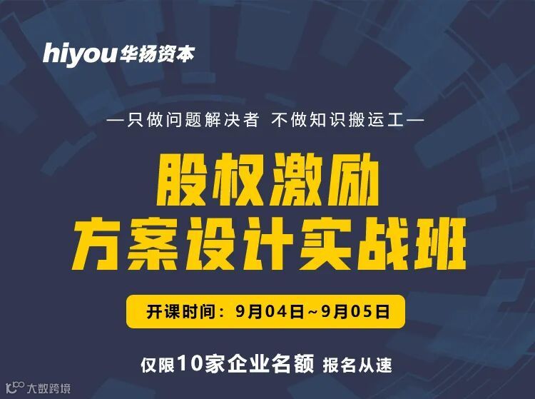 结合15年股权顶层设计、股权激励方案设计的实战经验,华扬开办了《股权激励方案设计实战班》,旨在为广大优秀企业家、高管人才普及科学的股权认知,分享股权激励方案设计的思路与技巧,助力企业资本价值提升!