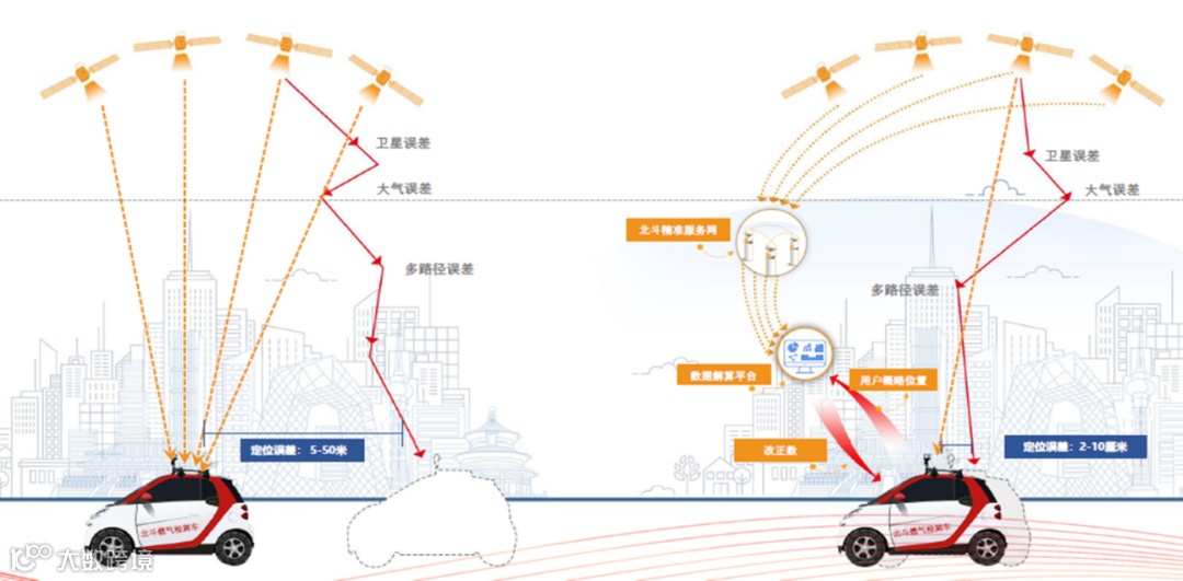 但是以“卫星+用户”的模式可以提供相应的位置坐标,但是由于受到大气干扰(包括降雨、云雾、日凌、太阳黑子)、电气电磁干扰(通常是在遮蔽物下建筑物里,或者是山谷、峡谷、隧道)、多路径干扰(用户附近其他物体的反射信号)等因素的影响,位置坐标精度偏差大约在十米左右的位置。