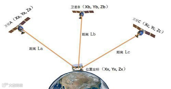 是主控站根据卫星轨道参数和地面测控站的数据综合计算得出的。也就是说三颗参考卫星的位置坐标A(Xa,Ya,Za)、B(Xb,Yb,Zb)、C(Xc,Yc,Zc),已由空间段与地面段部分优先核算完成了。