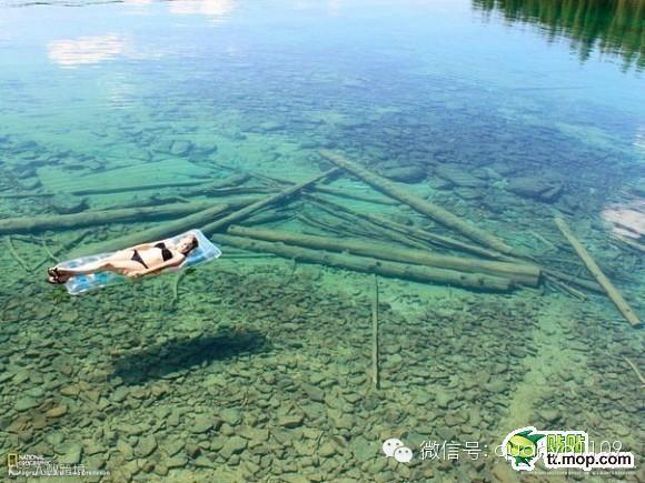 在美国西北部蒙大拿州。水是透明的,似乎可以说明它是一个很浅的湖。事实上,那里的湖是很深的。