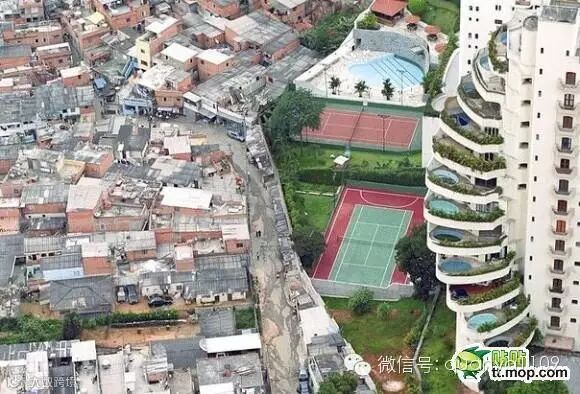巴西的贫民区,富豪和贫穷之间的分界线。