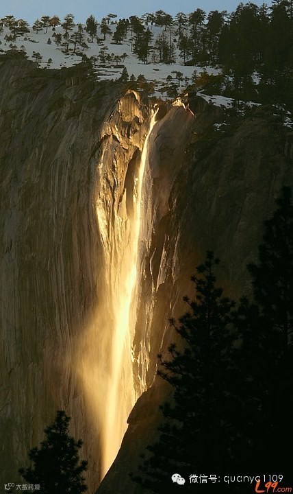 Horsetail Falls in Yosemite(米国加州优胜美地) 在这里,每年只有二月份的几天,