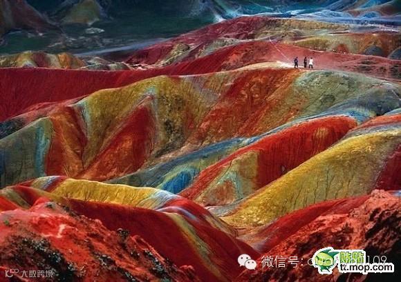 这个照片拍摄于甘肃省的张掖。土壤的颜色是数百万年的红色砂岩和其他岩石积累的结果。