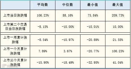 拉长时间看,首批上市的28只个股后续“一周、一个月、三个月”股价走势分化明显,并无实质性上涨趋势。