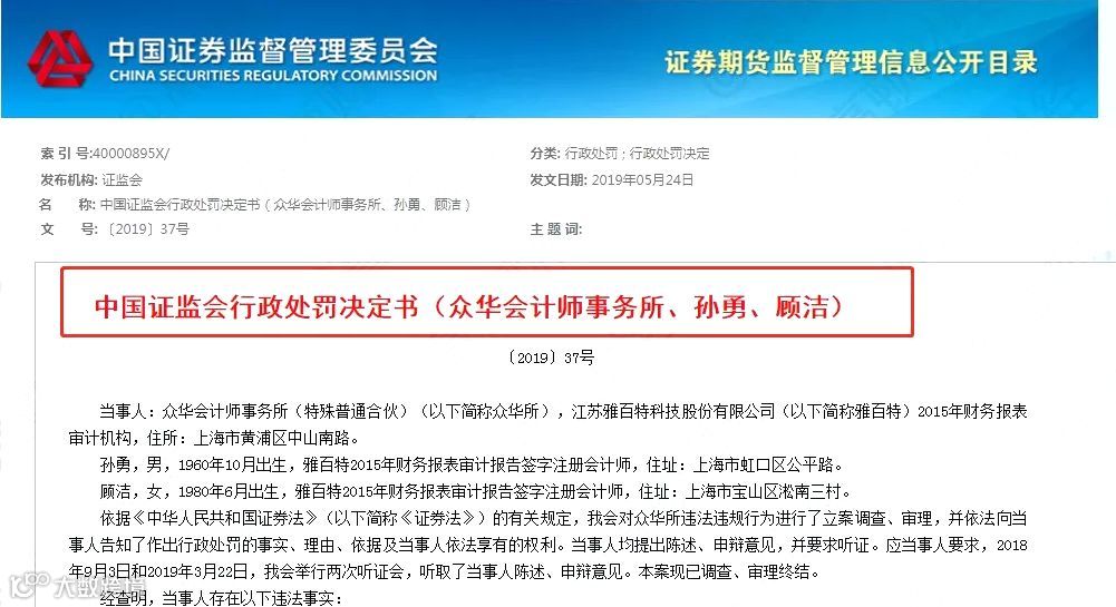 2019年5月24日,中国证监会发布处罚决定: