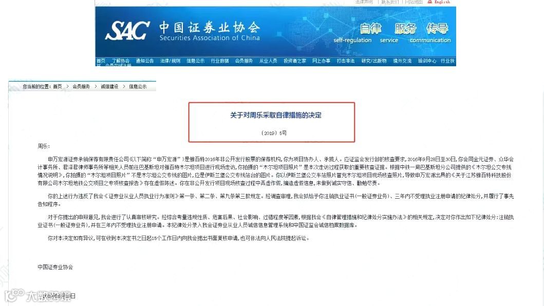 中国证券业协会发布近日发布消息:对申万宏源投行员工周某注销执业证书!