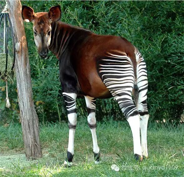 18、霍加皮,尽管身上有斑马条纹,但事实上血缘却是更靠近长颈鹿。