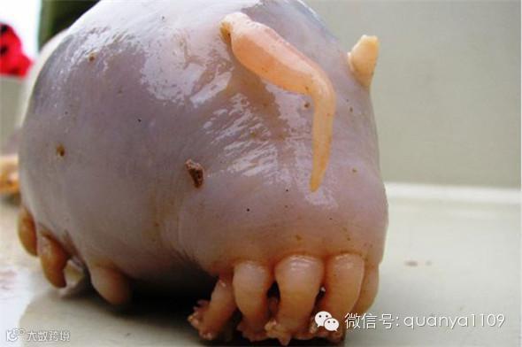 21、海猪,生活在深度超过1000米的海洋深处。通过吸取泥土中的养分来存活。