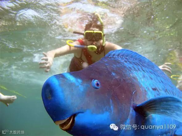 15、蓝鹦嘴鱼,在大西洋被发现。它会花费80%的时间来寻找食物。