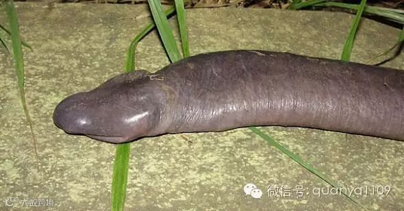 4、鸡鸡蛇,最明显的特征是没眼睛,是一种大型蚓螈两栖动物。