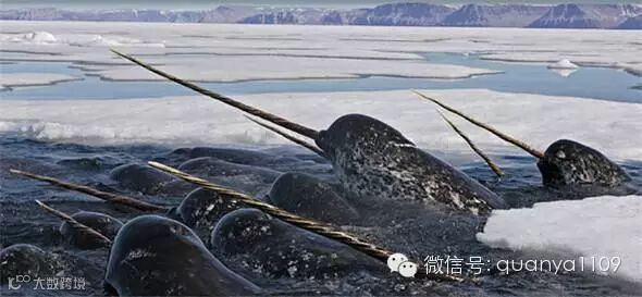 19、独角鲸,生活在北极海域,对气候变化特别敏感。