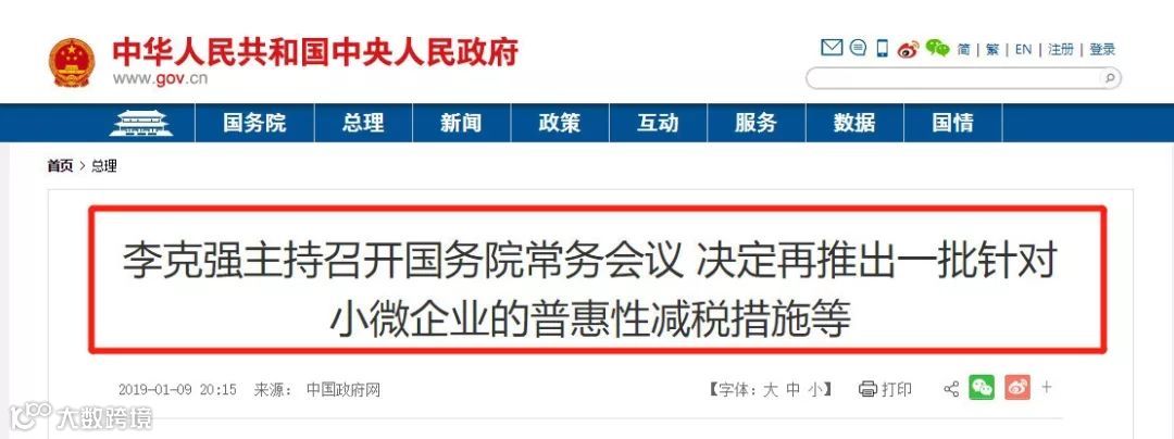 早在1月9日,国务院决定:对小微企业推出一批的普惠性减税措施。调整后,小型微利企业税负将降至5%和10%,增值税起征点将提至10万/月。