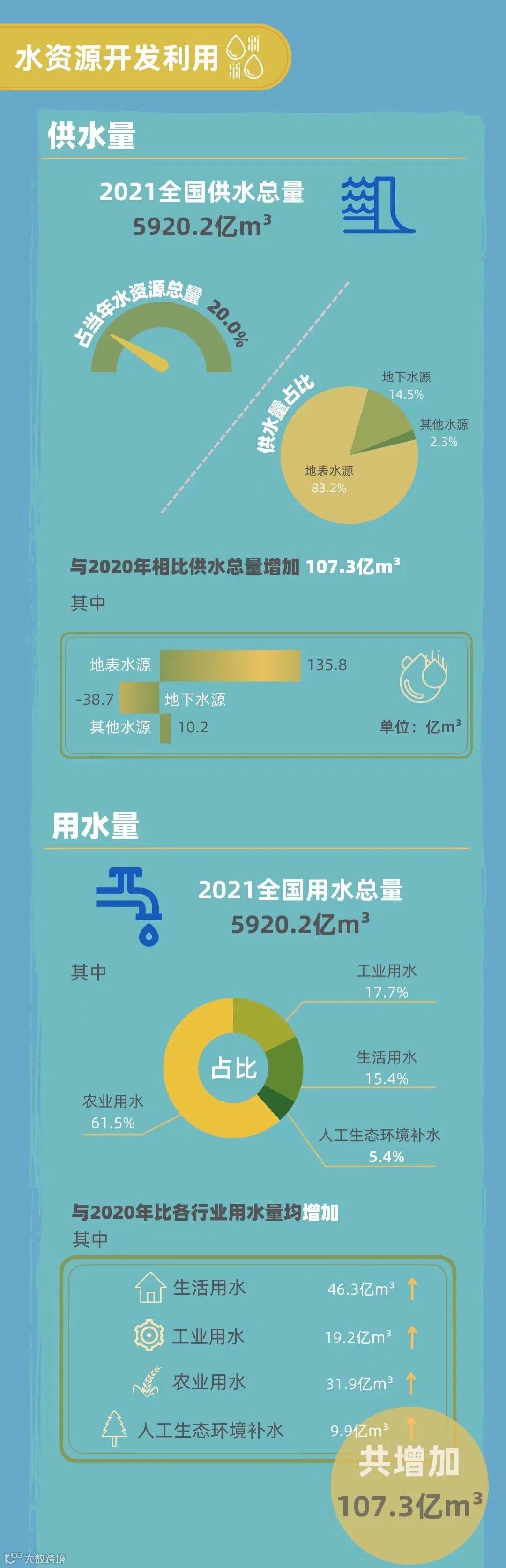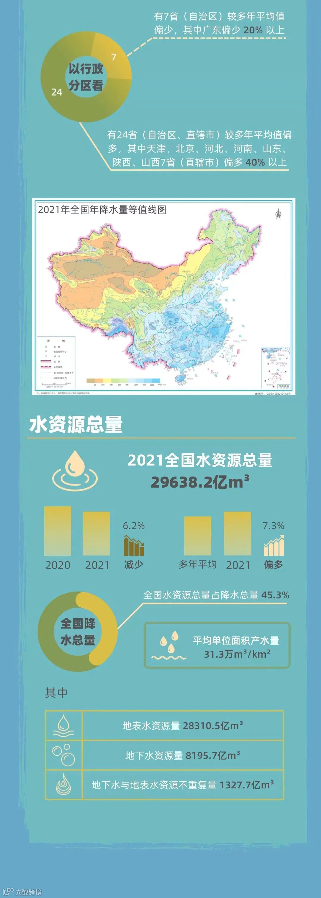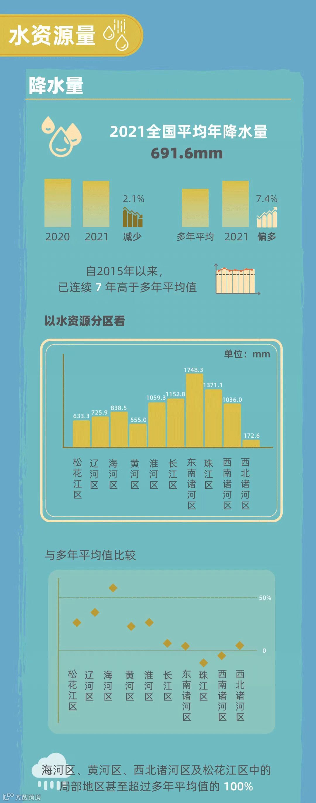 成都市水利电力勘测设计研究院近日,水利部发布了2021年度《中国水资源公报》,其中涉及的全国性数据是现有设施监测统计的结果。那么,2021年我国降水量、地下水资源量、地表水资源量以及总量是怎样变化?水库,湖泊蓄水动态如何?供水量、用水量、用水消耗量以及指标又是如何呢?