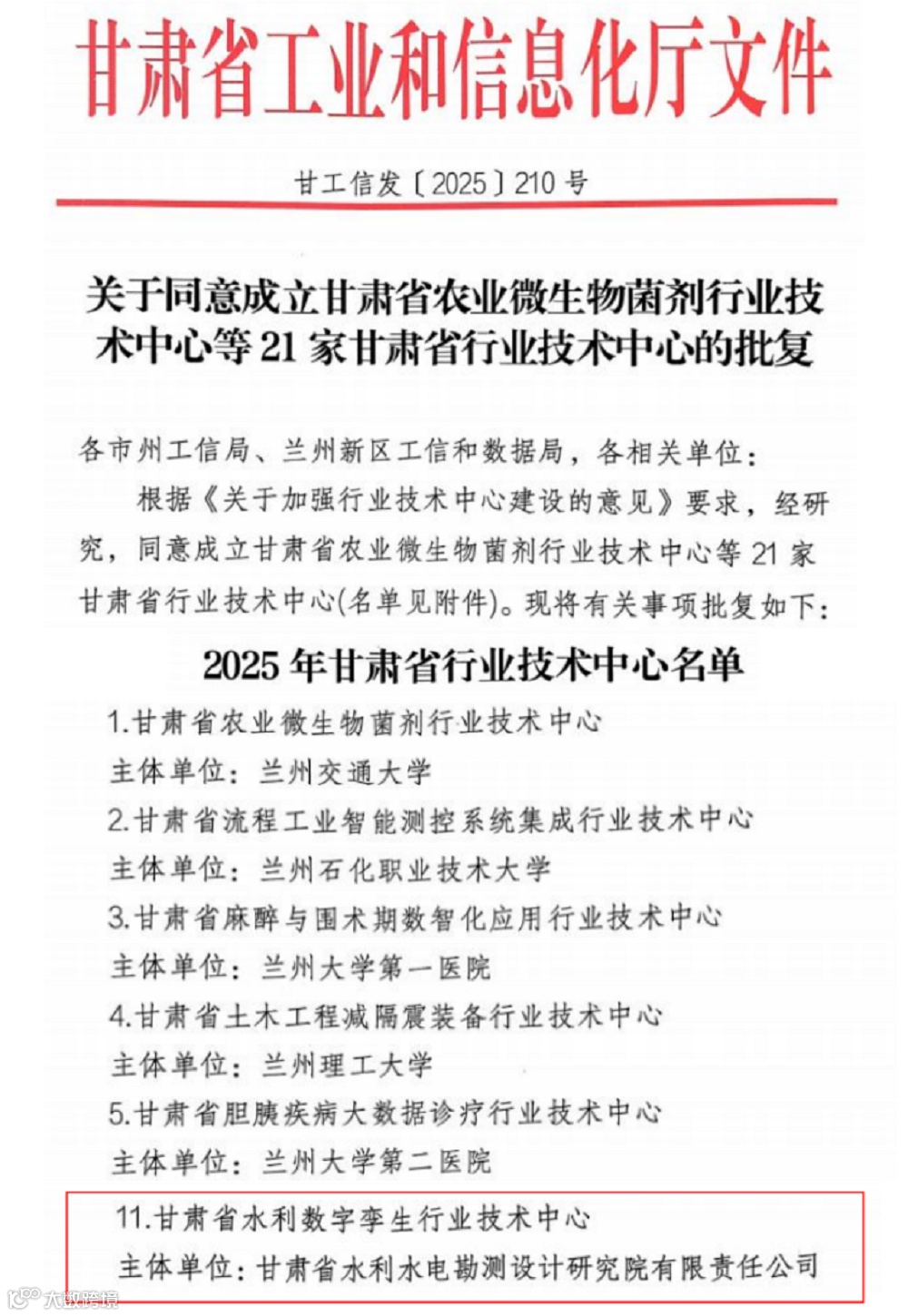 喜报丨甘肃省水电设计院成功获批甘肃省水利数字孪生省级行业技术中心