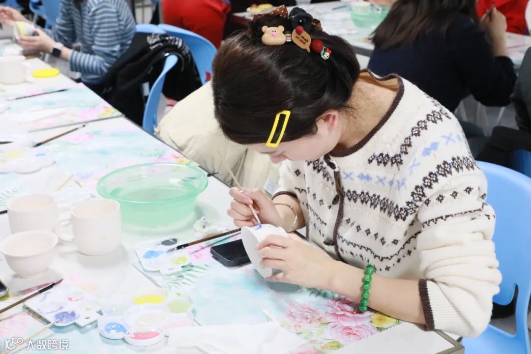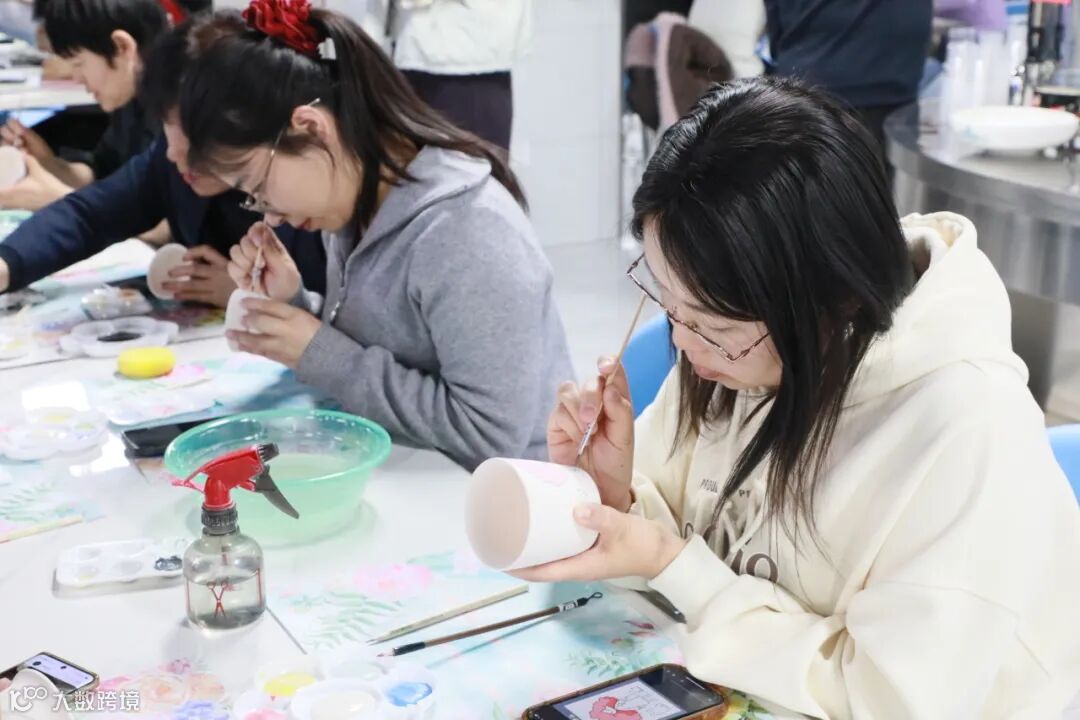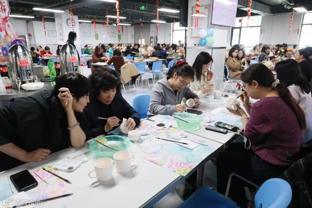 素坯静立,色彩入画。女职工们化身 “手工匠人”,执起画笔专注彩绘。描线勾勒轮廓,晕染铺陈色彩,或清雅简约,或灵动活泼,大家将巧思与审美凝于笔尖,在素坯上描绘独属于自己的美好图案。
