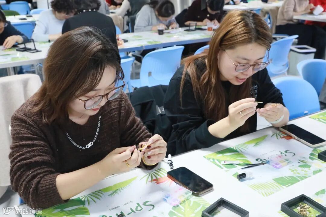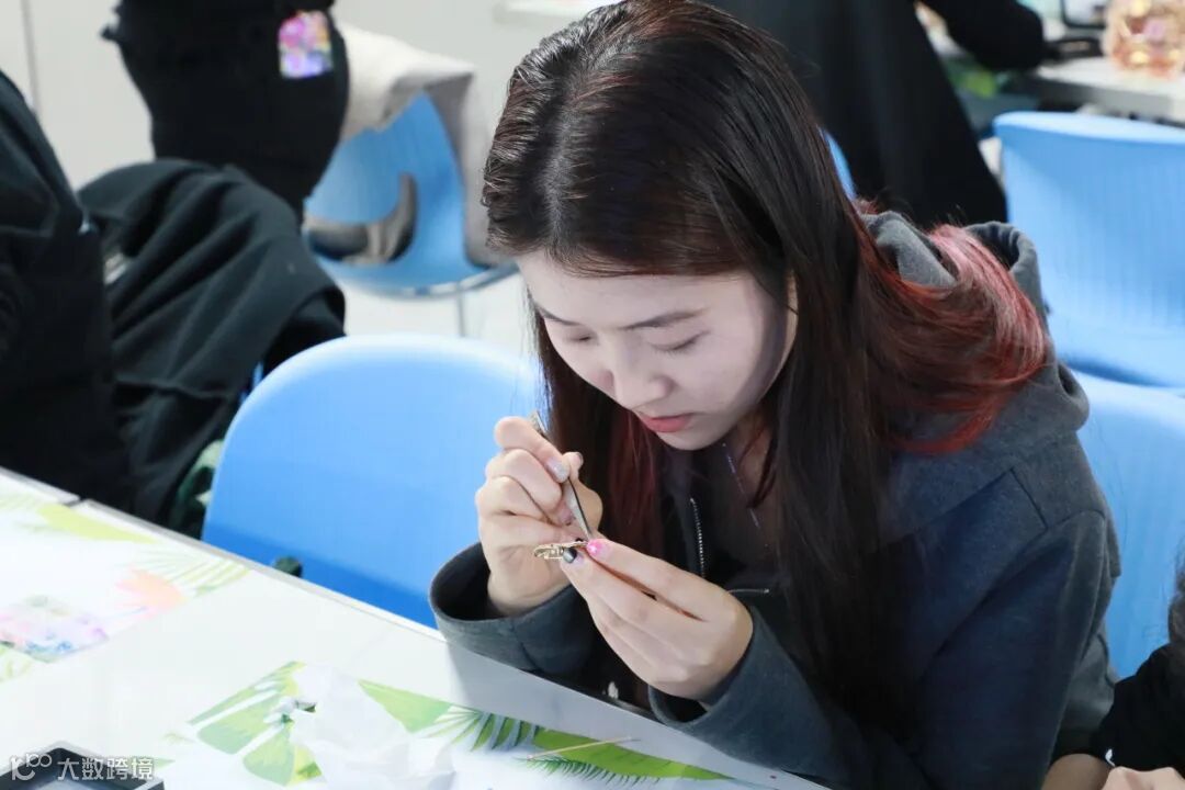 螺钿首饰、胸针DIY现场,满是精致与浪漫。选材、镶嵌……一道道工序考验着大家的耐心与细心。温润的螺钿片在指尖被雕琢成精巧的模样,与金属底托巧妙镶嵌,在光影下折射出灵动的珠光。