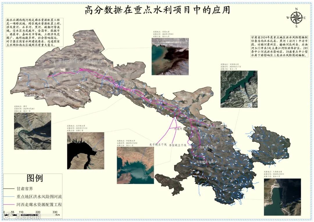 立足水利行业需求,具备工程测量、基础测绘、遥感解译、灾害监测与空间信息综合服务能力,可承担水资源调查、洪水风险分析、重大水利和应急技术支撑等测绘任务。2024年获批“高分辨率对地观测系统甘肃水利数据与应用中心”后,依托该中心构建了多源遥感与传统测绘融合的技术体系。