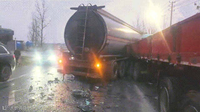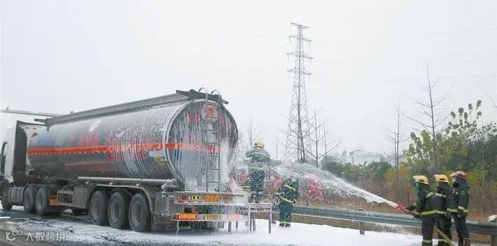 事件:12月12日凌晨5时许,湖北孝感G107国道蔡上湾附近发生一辆油罐车在路口等候红灯时,被后方半挂车猛烈追尾,罐体破裂导致汽油持续泄漏。