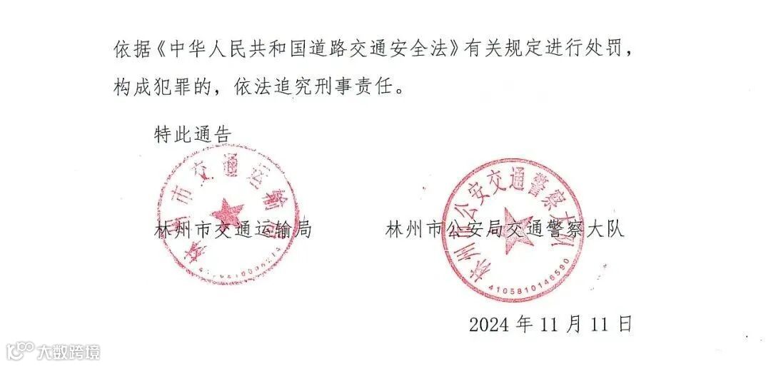 本公告自2024年12月1日起实行,对违反禁行规定的,依据《中华人民共和国道路交通安全法》有关规定进行处罚,构成犯罪的,依法追究刑事责任。